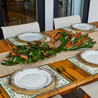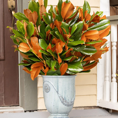 Our original magnolia collection is year after year our very best seller. Beautiful stems, fresh cut from the farm are handcrafted to reveal the vibrant glossy green magnolia leaves and their velvety copper underside. Featured throughout Southern Living’s Idea House 2013, Nashville, TN. A true classic!